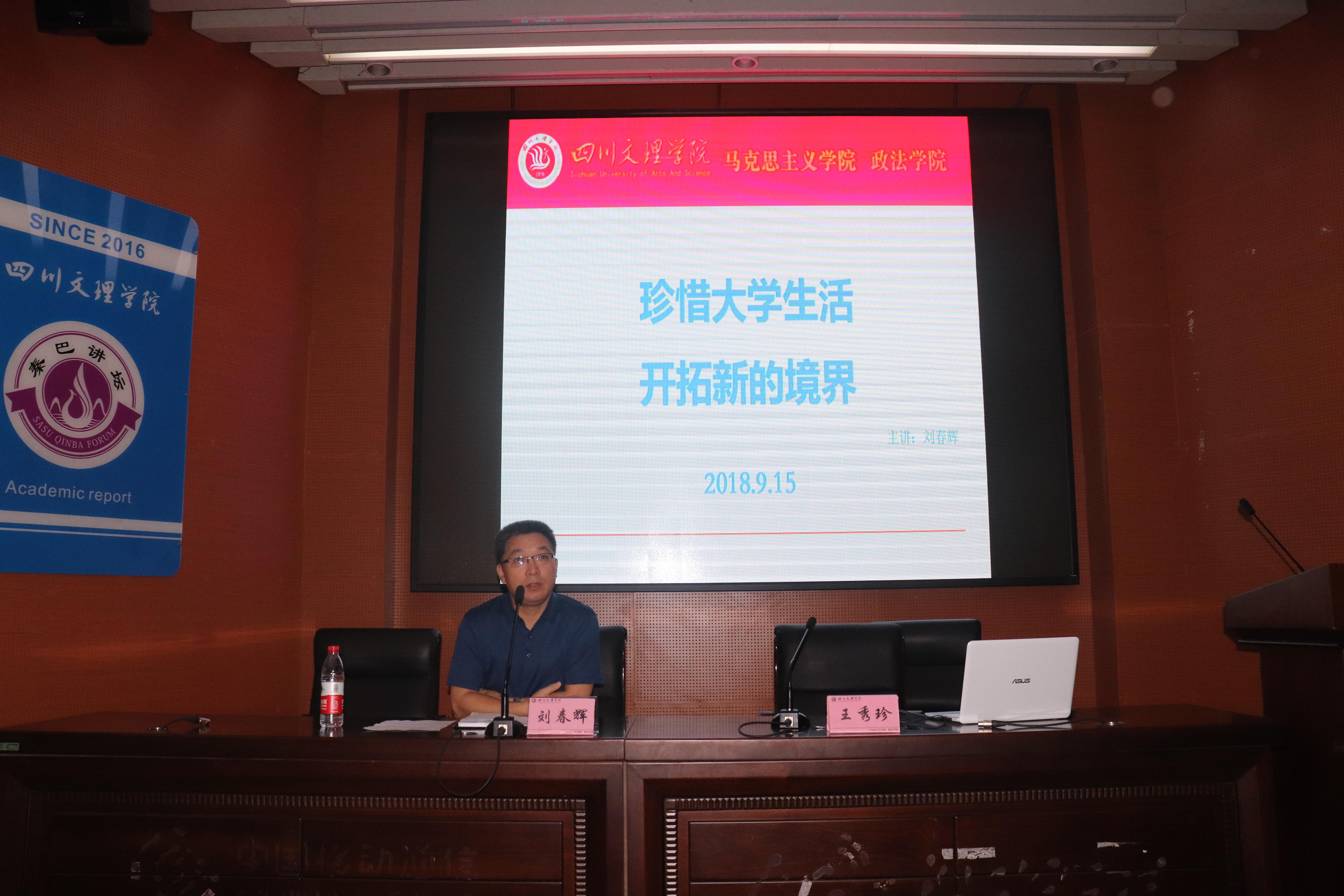 9月15日下午14:30分,马克思主义学院 政法学院在学术报告厅B厅举行了2018级新生入学教育,马政学院院长王秀珍,党总支书记刘春辉,学工办主任唐幸福出席会议,2018级全体新生列席。本次入学教育由刘春辉书记主讲。