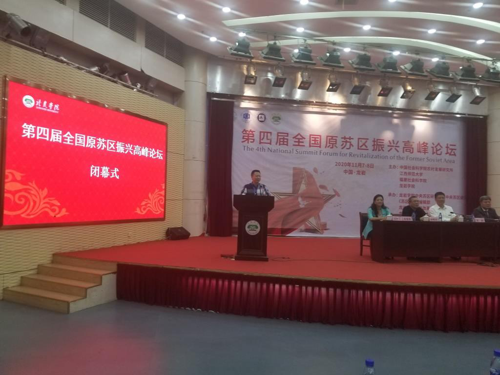 11月7日至8日,第四届“全国原苏区振兴高峰论坛”在福建龙岩学院举行。来自中国社会科学院、全国原苏区和其他革命老区的有关部门、高校的专家学者140余人参加了此次论坛,共谋新时代革命老区高质量发展大计。我校党委常委、副校长徐晓宗教授应邀带领学院院长刘长江教授、副院长何先成博士参会。