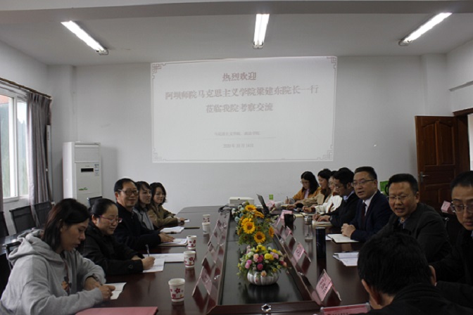 10月14日下午,阿坝师范学院马克思主义学院梁建东院长一行5人来我院考察交流。学院党总支书记刘春辉,党总支副书记、院长刘长江热情接待了来访的客人,并进行了亲切友好地座谈。