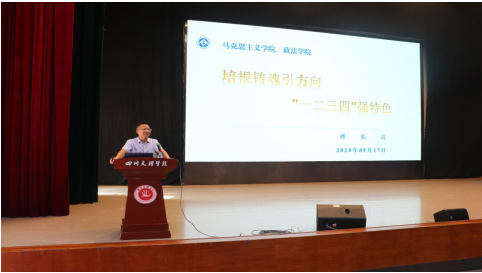 院长刘长江作《培根铸魂引方向,‘一二三四’强特色》专题讲座。他从学院概况、人才培养、学院办学特色和发展规划介绍了学院的基本情况,加深学生对学院和专业的认识,增强学生的专业自豪感,激发学生学习积极性;他对同学们开展职业生涯规范教育,引导学生明确目标、认真规划,激励他们勤奋学习。他希望同学们在四年的大学生活中要用奋进之笔绘就精彩人生画卷。