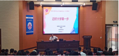 副院长何先成作《迈好大学第一步》专题讲座。他紧紧围绕学业发展、人际交往、心理调适和生涯规划四个方面为大一新生提供了一份有针对性、可操作性的“大学生活攻略”。一是大学学习要根据不同的阶段,制定不同的学习计划,做到学精学细,学习过程中要专注,要有执行力,学会自我反思;二是良好的人际关系需要相互尊重、相互理解、彼此包容、共同维护;三是大学生要完成从孩子到成人的转变,重新梳理人生的坐标、培养良好的学习习惯,面对困难和挫折要学会心理调适;四是要结合自身专业做好职业生涯规划,不断努力奋斗,完善自我提升自我。