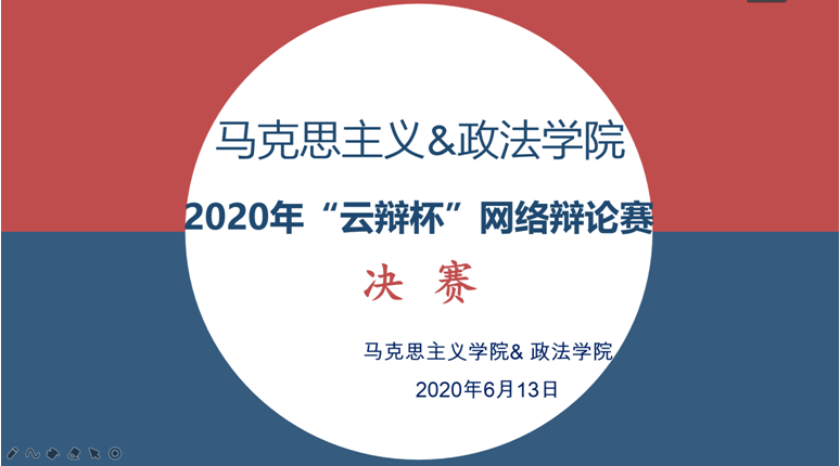 经过一轮又一轮的比赛淘汰和晋级,6月13日晚,我院“云辩杯”网络辩论赛决赛在腾讯会议上举行。学院党总支书记刘春辉、党总支副书记吴辉兵、辅导员曾亚出席。比赛还邀请了往届优秀辩手祝雪雅、蔡润禾、雷闵欢、贺民钟和杨雨洲担任此次辩论赛评委。全体2019级学生和部分2018级学生、2017级学生观看比赛。