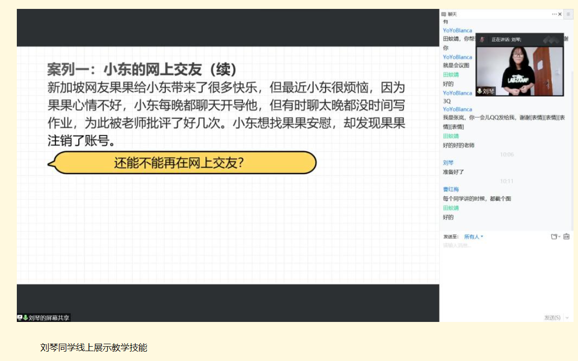 此次线上比赛严格按照竞赛规则进行线上说课(3分钟)和讲课(10分钟),评委结合选手提前发送的视频,根据竞赛时的综合表现,给出最终得分。经过激烈的角逐,黄雨欣、刘佳培2名同学获得一等奖,刘琴等3名同学获得二等奖,欧其军行等5名同学获得三等奖。 (具体获奖名单附后)