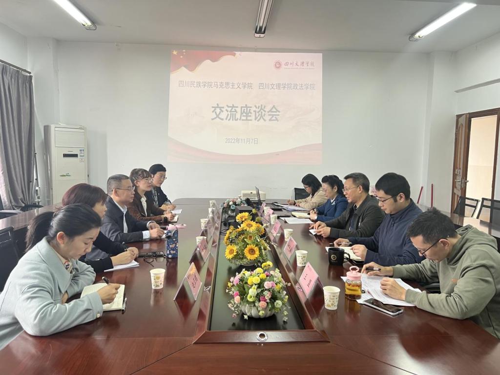 11月7日上午,四川民族学院马克思主义学院院长王波、教务科科长高雪燕、思想政治教育系系主任何光芬、思想道德与法治教研室主任赵正鹂、马克思主义基本原理教研室主任贺凌燕等一行5人来我院交流思想政治教育专业认证工作。学院院长刘长江、教科办主任张岚、思想政治教育教研室主任曹红梅、历史学教研室主任王盟参加交流座谈会。副院长何先成主持会议。