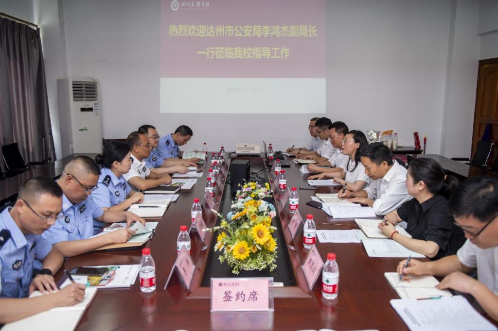 6月27日,我校与达州市公安局警校合作补充协议签约仪式在博文楼611会议室举行,我校副校长邓杰出席签约仪式并讲话,签约仪式由邓杰副校长主持。校地合作处副处长杨波、学院党委书记岳臣忠、院长刘长江、副书记刘良训、副院长何先成等参加签约仪式。