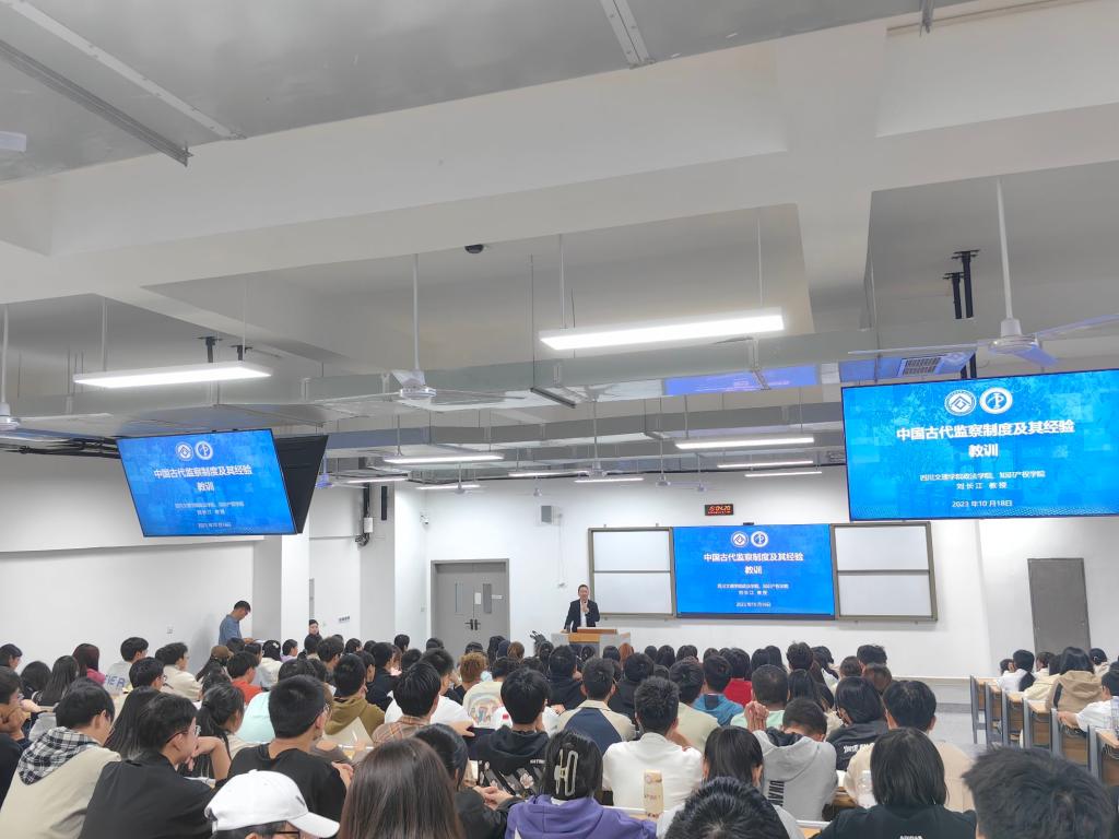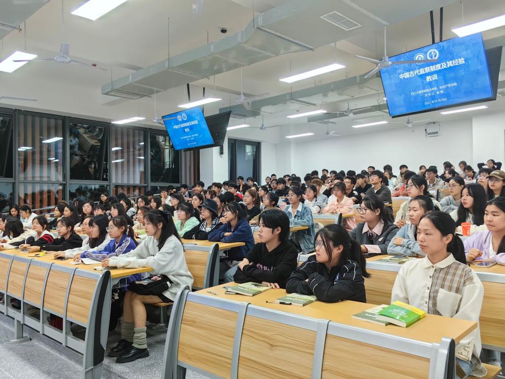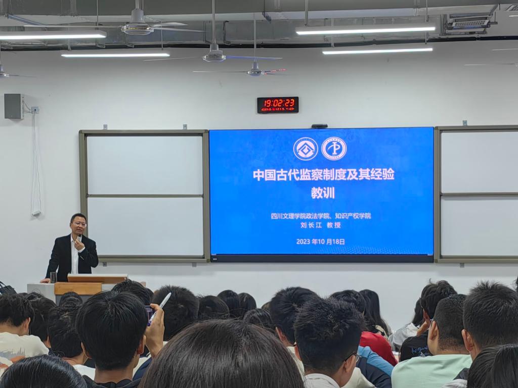 10月18日晚,刘长江教授于东区A318阶梯教室作“中国古代监察制度及其经验教训”学术讲座,政法学院党委副书记刘良训主持讲座,政法学院部分教师、历史学专业160余学生到场聆听。