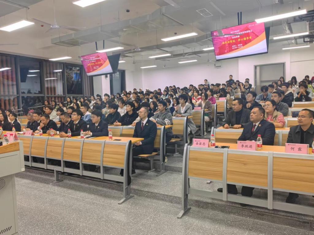 达州市人民检察院部分检察官,政法学院&知识产权学院、数学学院、财经管理学院等160余名师生到场聆听。
