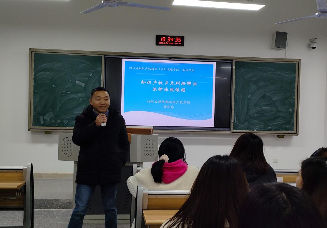 为加强川东北地区能源化工产业高素质知识产权人才队伍建设,提升学生的知识产权保护意识与能力建设,12月24日,四川省知识产权培训(四川文理学院)基地到政法学院开展“知识产权培训进学校”宣讲活动。
