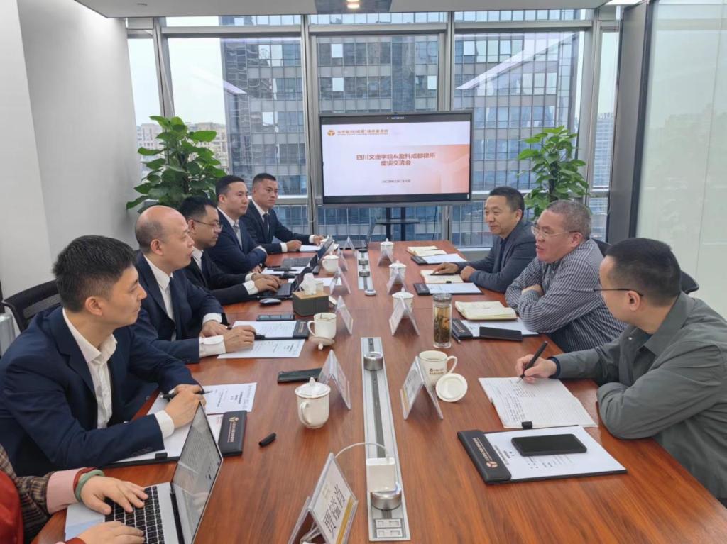 北京盈科(成都)律师事务所监事会主任、高级合伙人李波剑介绍了北京盈科国际国内发展现状与规划和盈科成都所基本情况。盈科成都管委会副主任、青工委主任、建工部主任张建律师谈及,事务所本着“不拘一格引人才”的原则积极吸纳四川文理学院的包括法学专业在内各专业背景的人才前来事务所工作;盈科成都所与四川文理学院在地方市域治理、乡村振兴等方面有着广阔的合作前景,期待能与四川文理学院建立战略合作关系,将校所合作推向纵深。