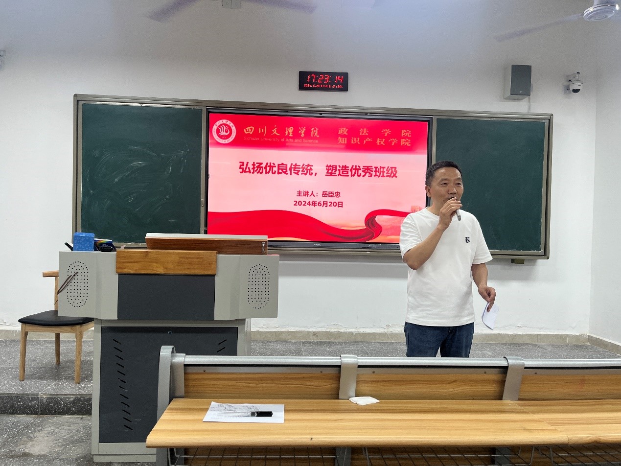 6月20日,学院党委书记岳臣忠在莲湖东区为2023级1班作“弘扬优良传统 塑造优秀班级”的主题讲座。