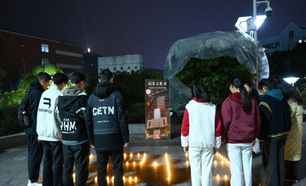为激发同学们的爱国热情,传承和弘扬中华民族的精神,主题活动上还开展了“青年来信”之国家公祭日线上、线下留言活动,并于晚上19时,在莲湖校区音演广场,点亮“12.13”等字样的电子蜡烛,用莹莹烛光引导青年学子驻足默哀,传递对和平的渴望与对生命的尊重。