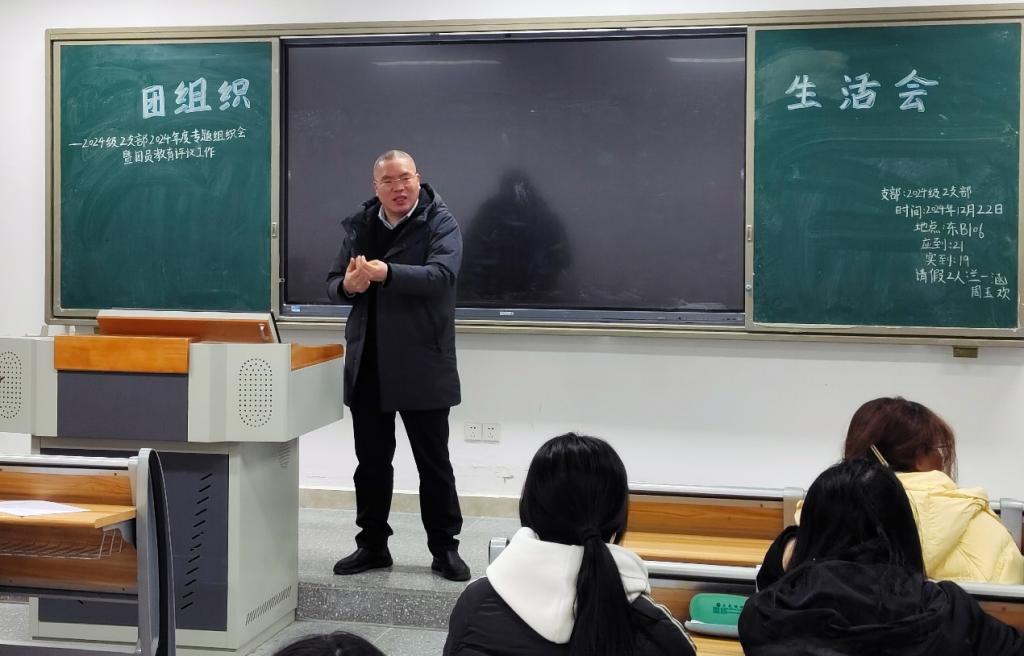 为营造齐抓共管、协同育人的工作氛围,进一步加强和改进我院大学生思想政治教育工作,共同塑造积极向上的班级风貌,2024年12月22日,学校党委副书记徐晓宗教授应邀来到东B106教室,作为教学班联系人指导政法2024级2班团支部专题组织生活会暨团员教育评议。