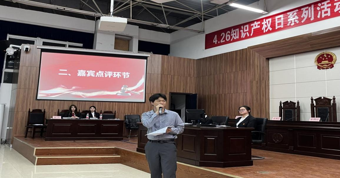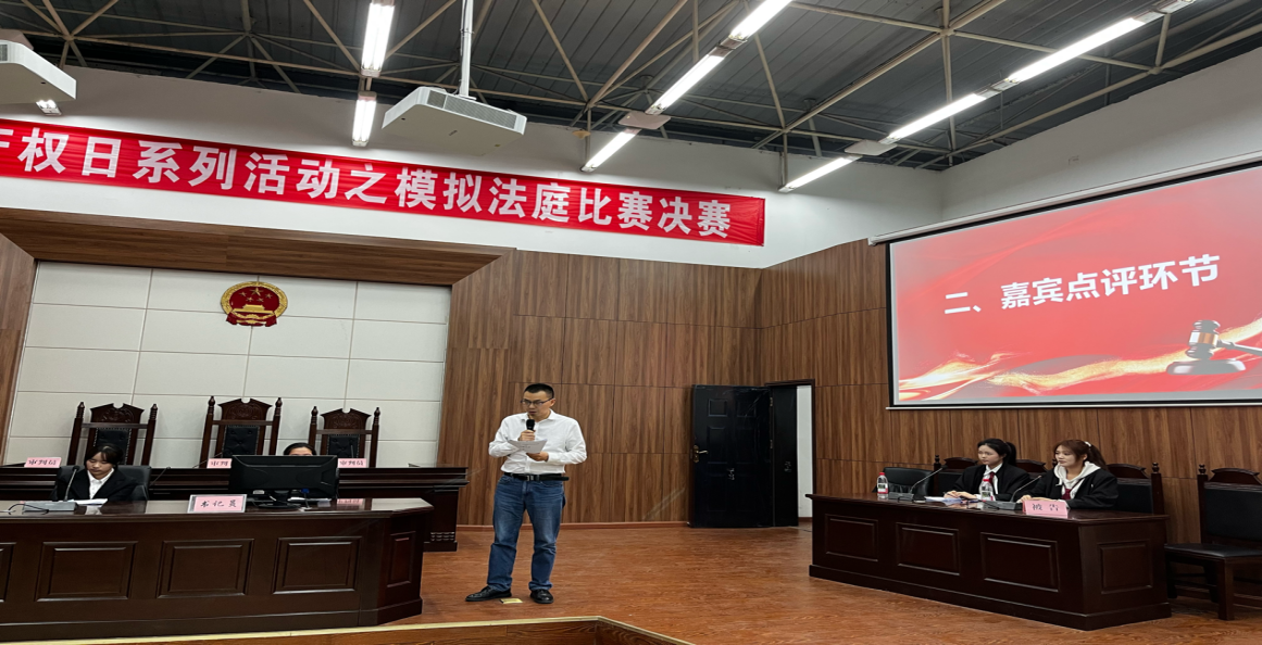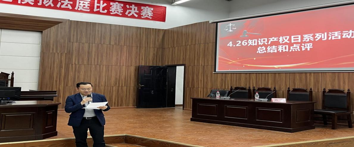 4月25日晚,由政法学院、四川省知识产权培训(四川文理学院)基地、四川省知识产权公共信息服务网点(四川文理学院)联合主办,四川文理学院大学生法律协会承办的4.26知识产权宣传周系列活动之知识产权模拟法庭竞赛决赛暨知识产权宣传周系列活动颁奖典礼在莲湖校区模拟法庭成功举办。达州市市场监督管理局机关党委书记邱立权、政法学院知识产权学院副院长(主持工作)何霖研究员出席活动。达州市市场监督管理局知识产权科科长张俊辉、四川智达九州专利代理事务所总经理胡朗、四川智达九州专利代理事务所合伙人余义丽、四川奥飞律师事务所律师伍家根(学院2018级知识产权专业校友)受邀莅临指导,学院部分教师及我院2024级7、8班知识产权专业学生参与活动。
