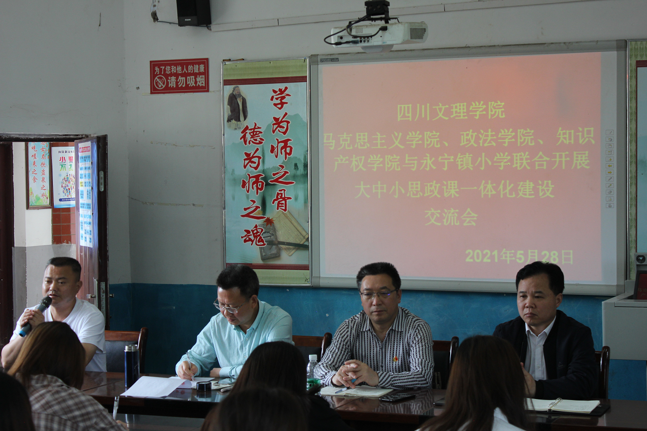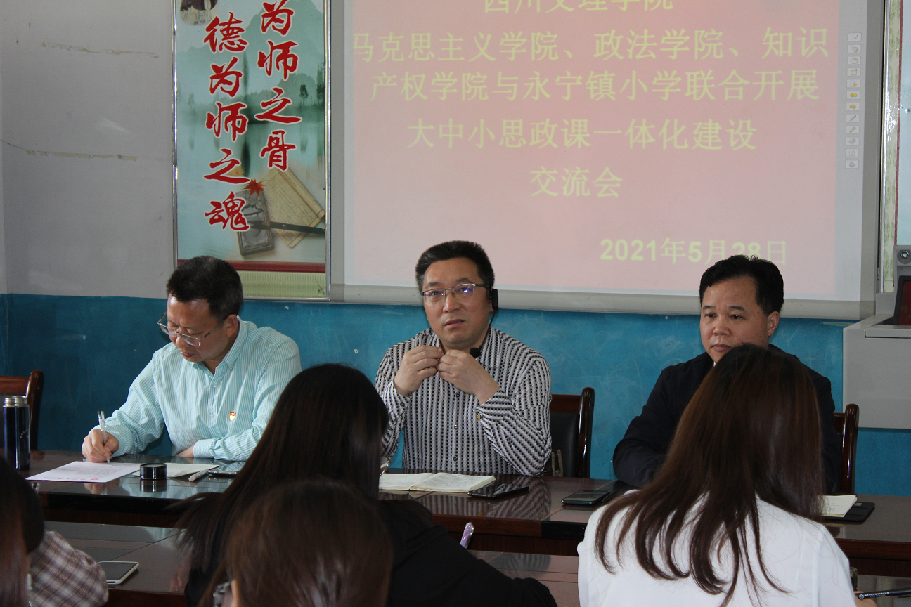5月28日,马克思主义学院、政法学院、知识产权学院与万源市永宁镇小学,联合开展了大中小学思政课一体化教学研讨活动。学院党总支书记刘春辉、院长刘长江出席并讲话。永宁镇小学校校长卢成军出席并作报告。万源市委宣传部副部长(挂职)李玉印出席活动。