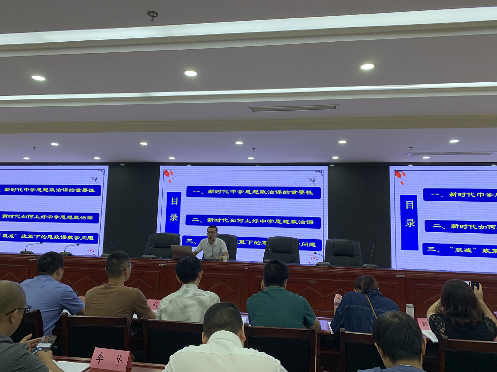 王盟老师通过理论政策与现实案例相结合,用风趣幽默的语言对新时代中学思想政治课究竟如何开展、如何有效提升课堂效率,打造学校思政课品牌进行了多方面的解读。