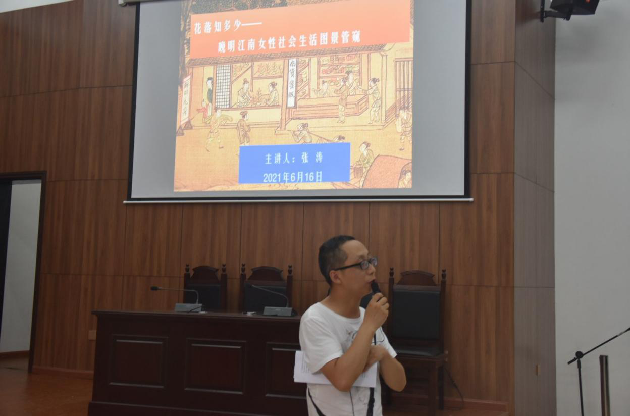 6月16日晚7点,张涛老师在博文楼113教室作“花落知多少——晚明江南女性社会生活图景管窥”学术讲座,我院2019级、2020级部分同学参加此次讲座。
