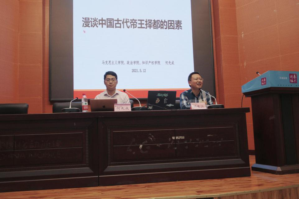 5月12日晚7点,学院副院长何先成博士在学术报告厅B厅作题为“漫谈中国古代帝王择都的因素”的学术讲座。院长刘长江教授主持讲座。