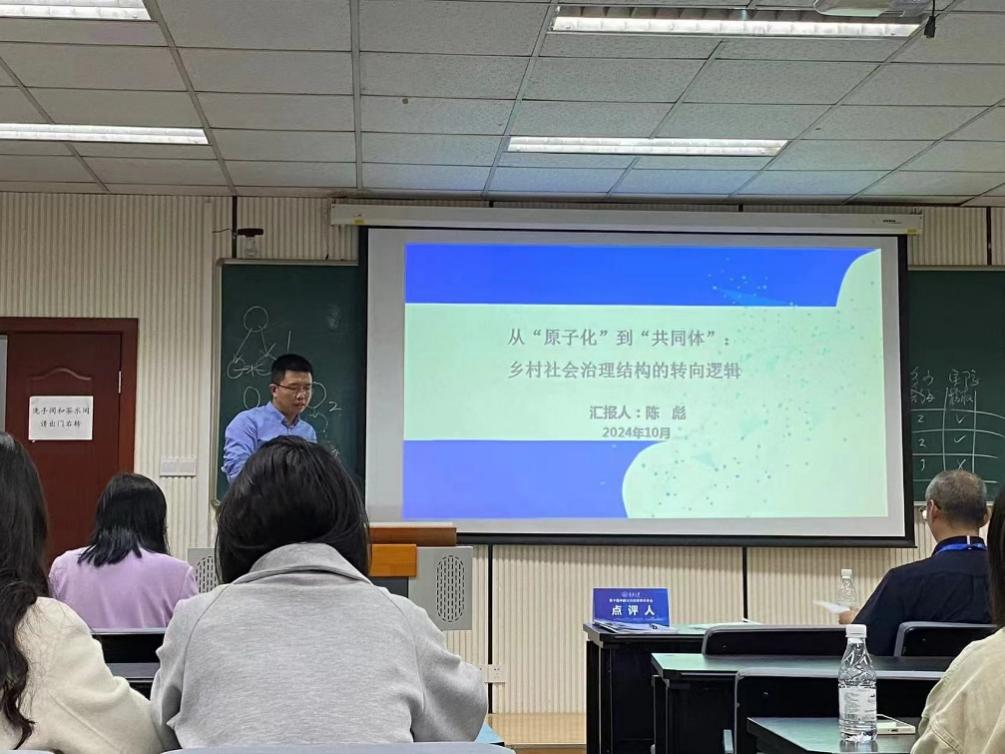 陈彪博士以“从原子化到共同体:乡村社会治理结构的转向逻辑”为题作交流发言,并得到与会专家的高度认可。他提出从工业化、城市化催生的原子化情境到学界新进关注的乡村社会治理共同体研究出发,进而探讨从原子化到共同体是乡村社会治理结构转向的特征。他围绕原子化的形成过程以及社会治理共同体的构建逻辑,提出乡村振兴是推动乡村社会治理结构转向的重要动力,激活乡村社会内生动力是乡村社会共同体构建的关键。