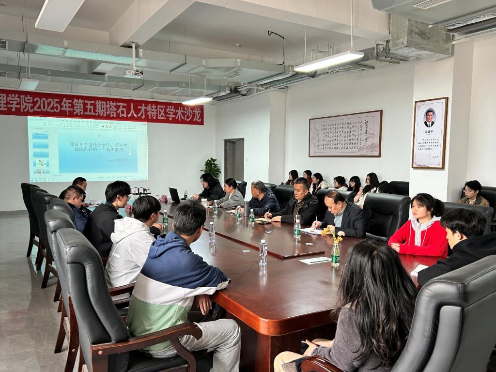 2025年4月1日下午,由学校党委组织部、科技处主办,我院承办的四川文理学院第五期塔石人才特区学术沙龙在莲湖校区东区C108会议室举行,历史学教研室高层次人才、日本东北大学历史学博士时坚老师作《郑友玄考选处分事件:明末考成法执行的一个具体事例》专题报告,与谈人李会敏、朱仕金博士参与讨论并作点评,学院全体博士以及历史学专业部分学生参加了学术沙龙。