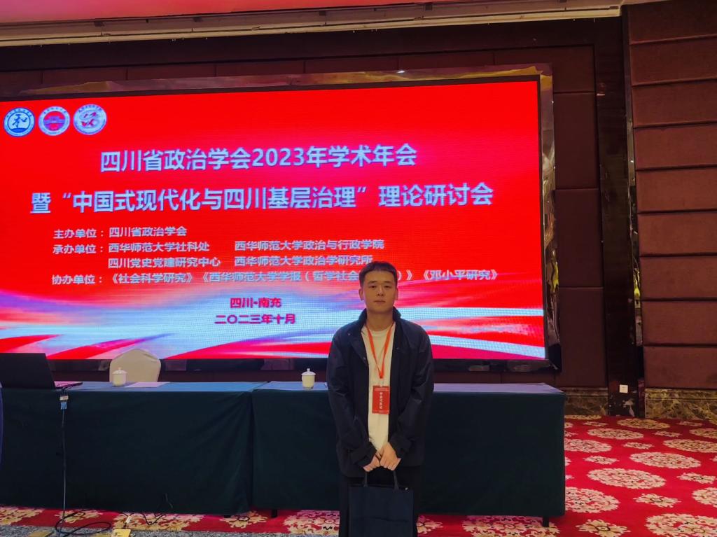 2023年10月27-29日,由四川省政治学会主办,四川党史党建研究中心、西华师范大学政治与行政学院等承办的四川省政治学会2023年学术年会暨“中国式现代化与四川基层治理”理论研讨会在四川南充举行。来自武汉大学、四川大学、西南交通大学、四川省社会科学院等著名高校与研究机构的专家学者及党政机关干部,《社会科学研究》《邓小平研究》《西华师范大学学报 (哲学社会科学版) 》等期刊编辑及征文入选作者近100余人参加了本次会议。会议采取“以文参会”的形式,我院刘卓知老师应邀参会。