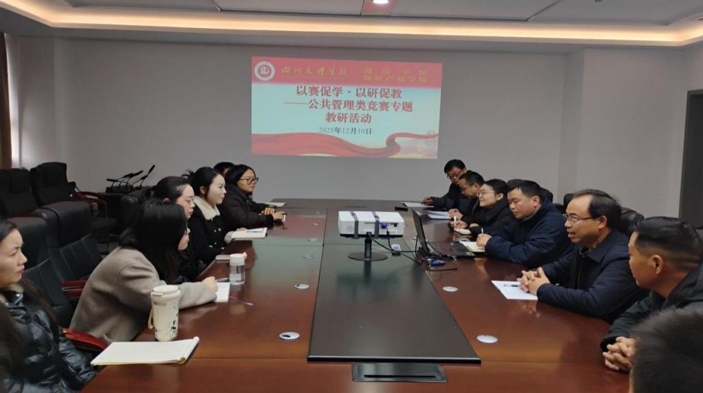 12月10日下午,行政管理教研室于莲湖东区C310会议室召开以“以赛促学·以研促教”为主题的公共管理类竞赛专题教研活动。四川省纪委监委驻学校纪检监察组组长、学校党委副书记、纪委书记帅胤到会观摩指导,党委书记张皓、院长何霖及教研室全体教师参会。本次教研活动旨在为提升竞赛指导水平与推动专业建设凝聚智慧、积蓄动能。