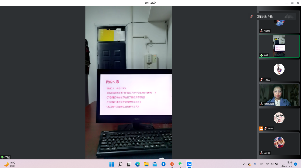 为提高师范生技能运用水平,将知识与理论结合,在实践中积累经验,丰富阅历。四川文理学院政法学院、知识产权学院在本学期对思想政治教育专业的学生开展了见习活动,因疫情防控采取了线上见习模式,11月17日四川省通江县实验中学牟超老师,为2021级、2020级思想政治教育专业学生带来了第一节线上见习课程,还有部分教职工老师参加了本次会议。