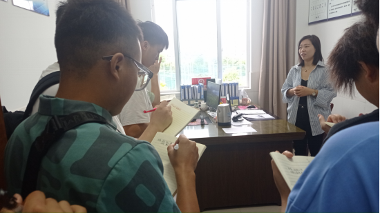 为使同学们更加详细了解邱家店社区办公环境、办公事项、基层治理经验和治理难点等内容,在办公室考察调研环节采取分小组进行,分别对四个办公室进行了考察学习。
