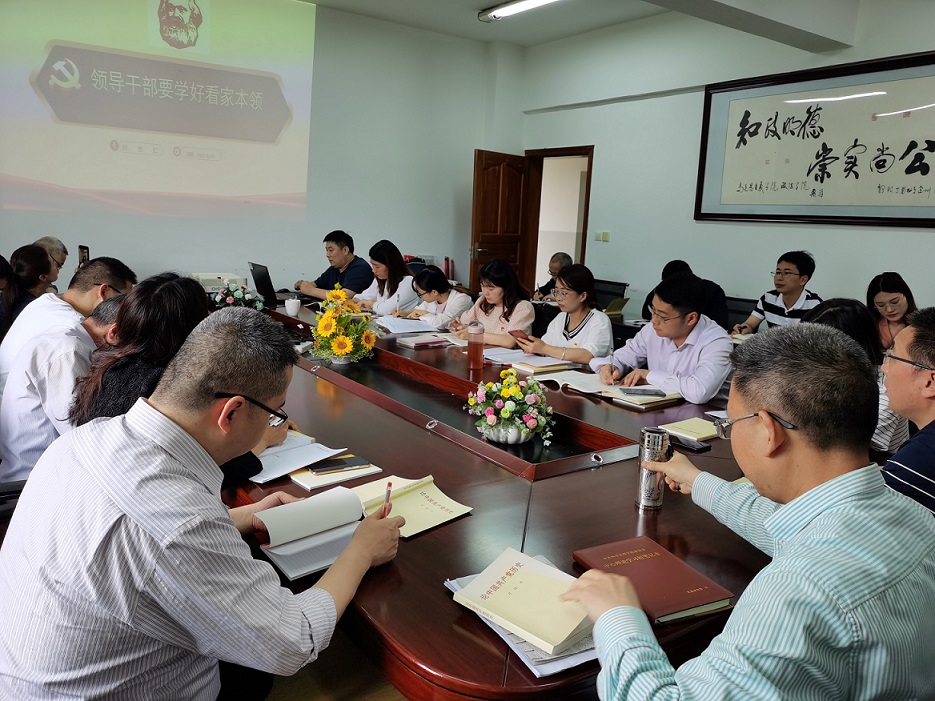 5月19日下午,学院教师刘世仁在博文楼611会议室为全体教职工讲题为“党员干部要学好看家本领”的微党课。党总支书记刘春辉主持会议。