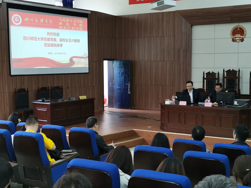 4月22日下午,党史学习教育四川省委宣讲团第九分团团长、四川师范大学党委常委、副校长王川教授在博文楼113教室为我院师生作党史学习教育宣讲。学校党委常委、副校长邓杰,学院党总支书记刘春辉出席。学院党总支副书记、院长刘长江主持报告会。