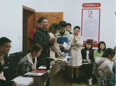 3月16日,我院学生党支部于博文楼611会议室召开支部大会。本次会议讨论了2018级预备党员罗建军同志的转正申请。会议由党总支副书记莫春梅主持,支委会成员唐幸福、曾亚、刘丹、入党介绍人张欣及全体学生党员参加了本次大会。