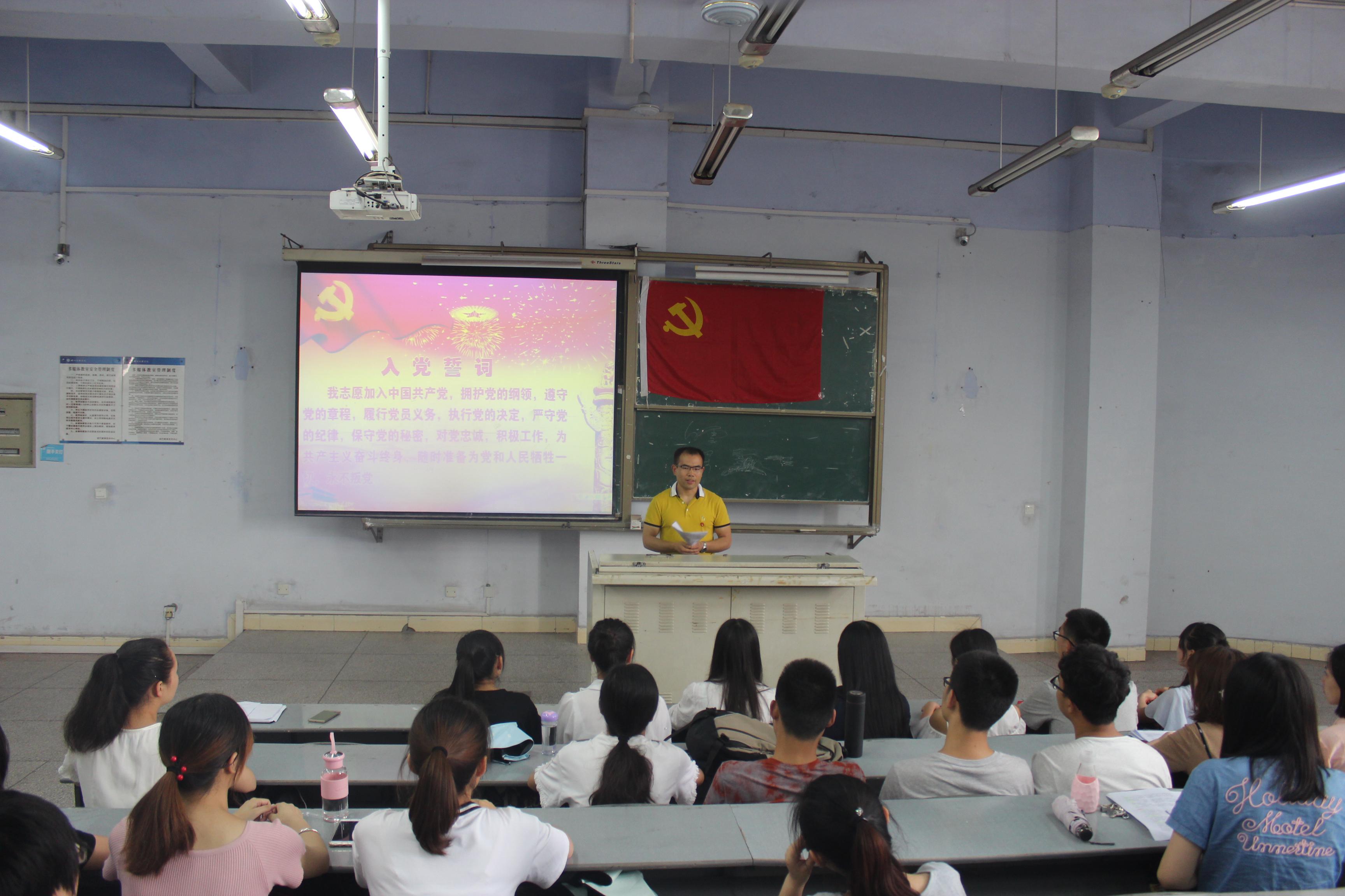 6月20日下午3时,政法学院学生党支部在一教楼524教室举行预备党员入党宣誓仪式。仪式由支部委员陈昊主持,支部全体党员、预备党员参加活动。