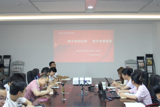 岳臣忠强调,要深入学习党在政治、组织、廉洁、群众、工作和生活等各项方面纪律要求,了解其内涵,充分认识加强党的纪律建设和纪律教育的重要意义,认识其对于保持党的先进性、纯洁性和强大战斗力的关键作用。他指出,广大党员严格遵守党的纪律是党员的基本义务,要在在日常教育教学活动中恪守纪律规范自己的行为,坚定理想信念,起好模范作用。学院要结合师德师风教育,创新党纪教育形式,注重学习效果,真正让严格的纪律保障学院各项事业健康发展,为学校建设,为升硕攻坚工作贡献政法学院、知识产权学院的智慧和力量。