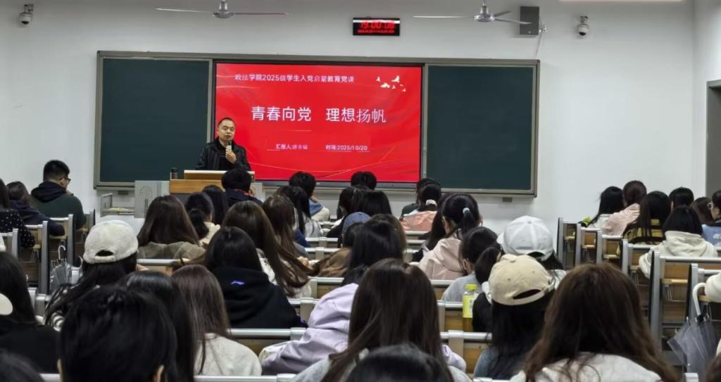 为引导2025级新生树立正确的入党动机,筑牢理想信念根基,明确新时代青年的使命担当,10月20日,我院在莲湖东区B504教室举办“青春向党,理想扬帆”入党启蒙教育活动。学院组织员唐幸福主讲,2025级各班团员、班干部及团总支学生会部门干事齐聚一堂,共同开启了一场思想淬炼与精神洗礼之旅。