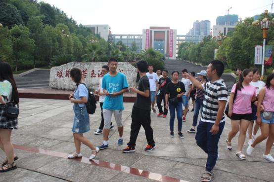随后2017级全体同学按照班级参加校园文化导游活动,校园导游吴正霞、申威、喻湘君、李巍分别带领17级思政班、历史班、行管班、法律班同学游览并讲解校园,他们仔细的向同学们讲解了我们校园的每一处风景典故。