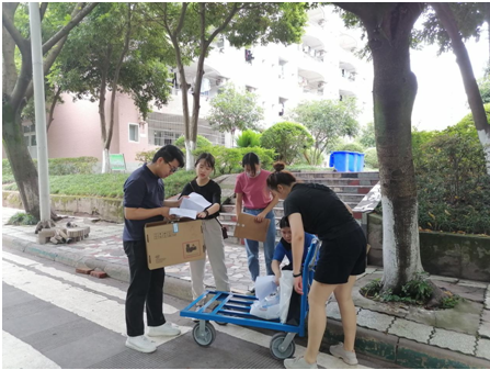 6月15日上午,在辅导员曾亚老师的带领下,政法学院党员服务队前往学生宿舍为学院同学邮寄笔记本电脑、部分书籍以及其他个人物品。