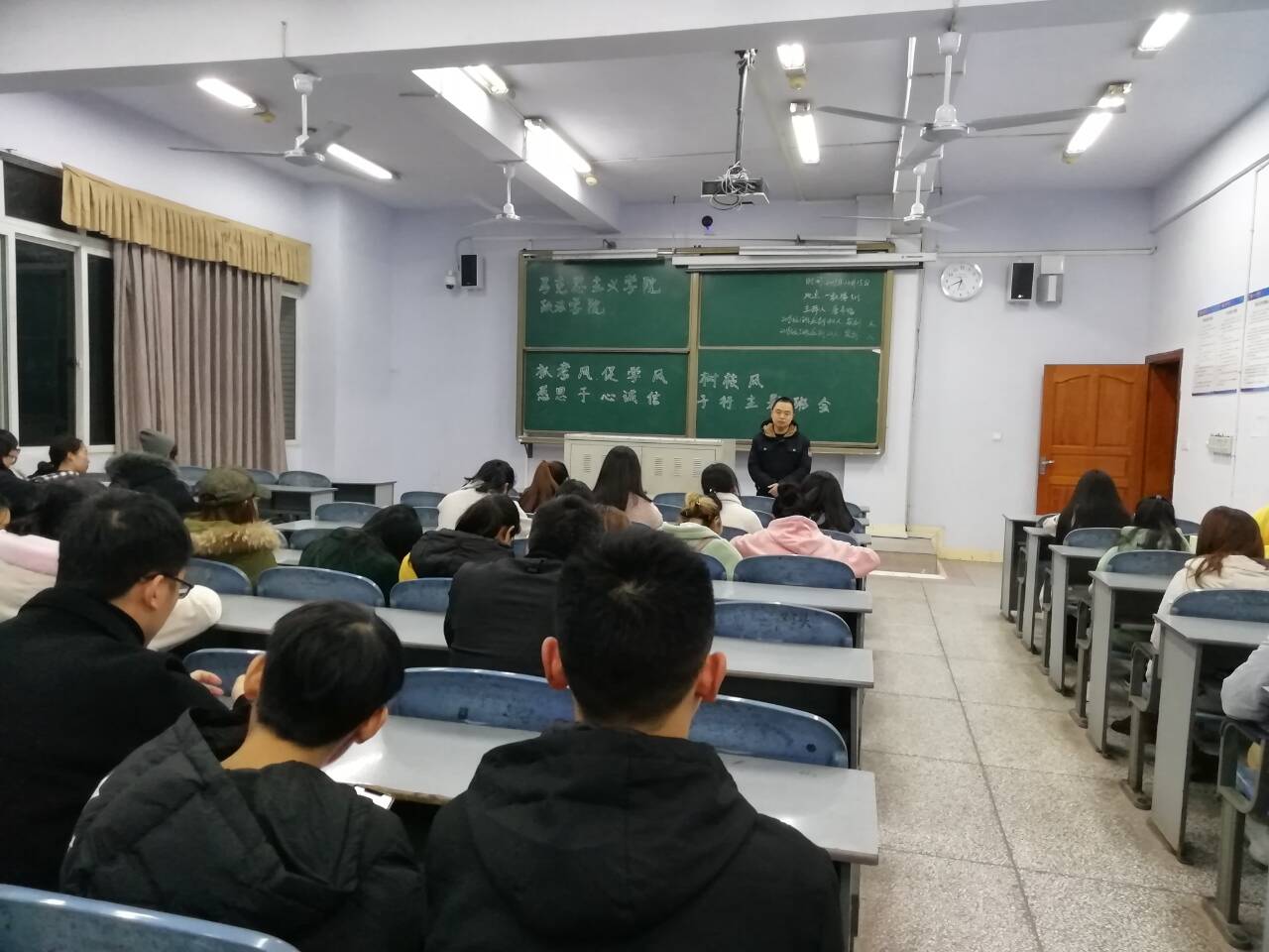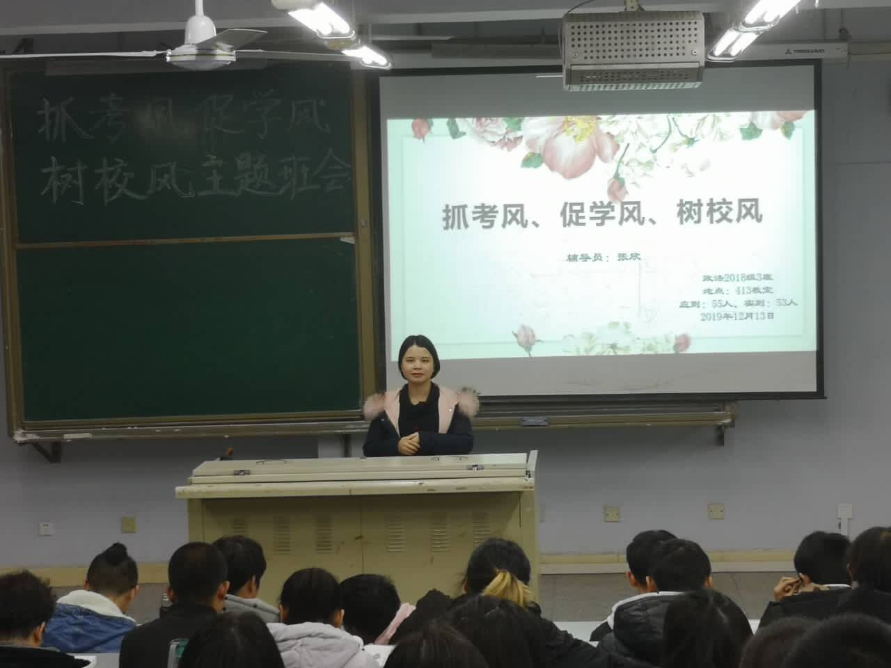 为培养学生自立自律、刻苦学习的作风,塑造诚信品格,营造良好考风,展现文理学子的优良学风,12月12-15日期间,我院各班自主召开“抓考风,促学风,树校风”主题班会。由各班辅导员老师主持,全体学生参加。