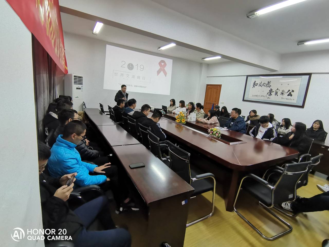 为加强广大学生的防艾意识和道路安全意识,12月1日晚,我院各班在博文楼开展“知艾防艾、共享健康暨路口文明教育”主题班会,各班辅导员老师主持班会。