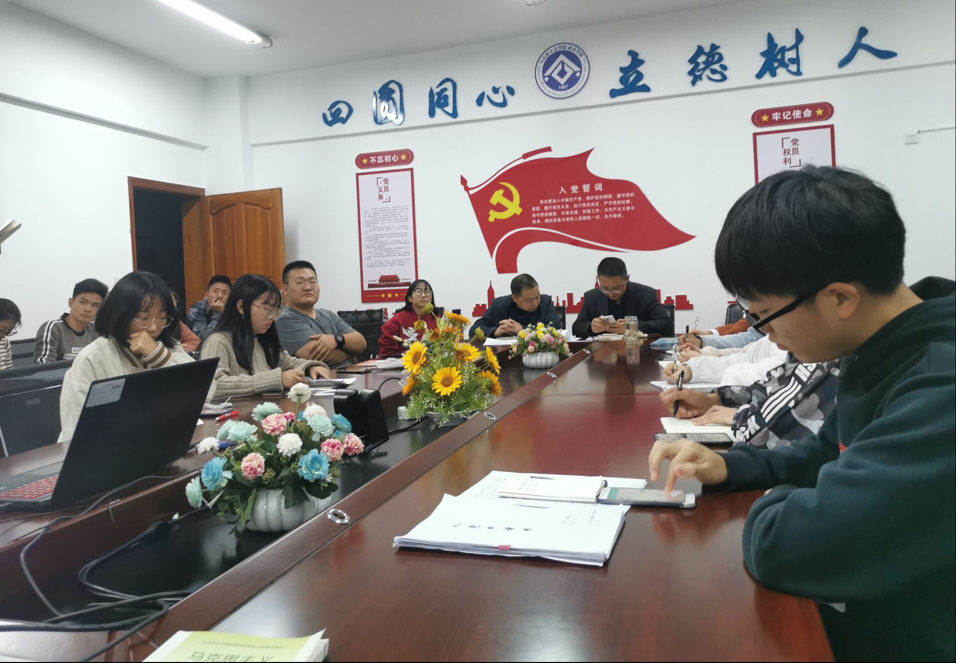 10月23日晚,我院在博文楼611会议室召开了2019年先进班集体评选大会。党总支副书记吴辉兵、学工办主任唐幸福、辅导员曾亚、学院团学主要学生干部出席会议,大一、大二各班班长和团支书观摩了此次活动。