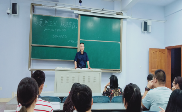 9月2日晚,我院在博文楼513室召开2019-2020学年第一学期学生干部大会,学工办主任唐幸福主持,党总支副书记吴辉兵,辅导员曾亚出席,全体团学干部、各班团支书和班长参加会议。