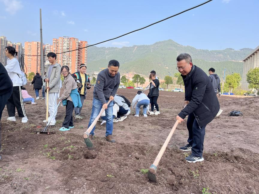 在学院书记和院长的指导下,同学们来到劳动基地,纷纷撸起袖子加油干,全身心投入到劳作中去。在劳动中,大家分工明确,团结协作,不怕脏、不怕累,认真清除枯枝杂草,集中捡拾垃圾、清理砂石等废弃物,有序进行翻地、松土工作,整个过程干得热火朝天。前期工作准备完毕后,同学们紧接着进行下一环节的工作,在劳动基地上平衡施肥,撒下花种与草种,期待夏日花开。