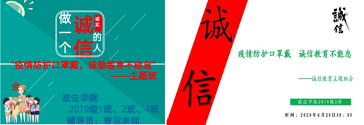 各班辅导员老师组织学生观看诚信教育视频短片,引导同学们认识诚信内涵、掌握征信知识、防诈骗知识和金融风险防范、不良贷和套路贷的技能,围绕着诚信教育、感恩教育、励志教育、征信教育这几方面来积极引导学生将诚信意识转化为自觉的素养与行为,要求同学们要诚实做人,诚信考试,积极践行社会主义核心价值观。