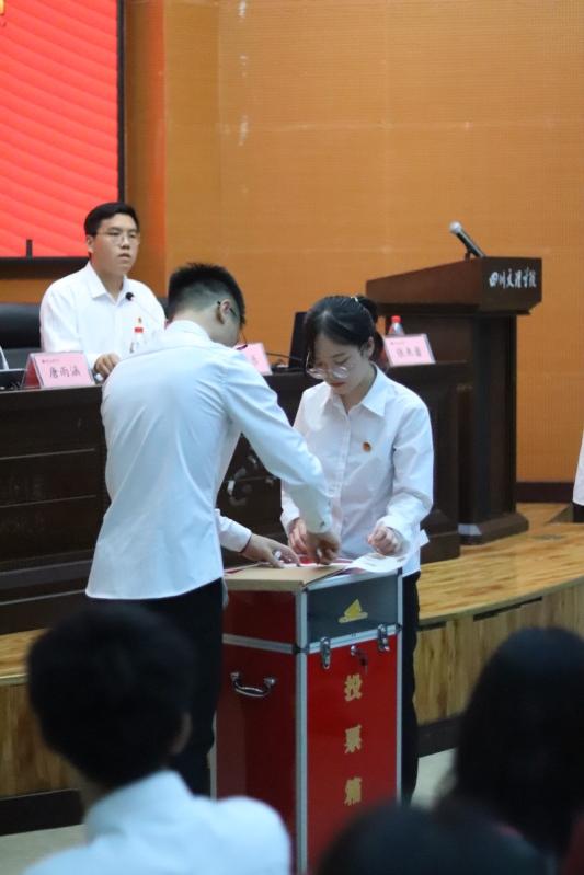 第二次全体会议上,学院学生会主席杨松林宣读团学增补委员候选人建议名单和监票人、计票人名单,辅导员唐雨涵宣读了团学增补委员选举办法。与会人员举手表决通过了《团学增补候选人建议名单》《团学增补委员选举办法》和《学院三届三次代表大会暨第七次学生代表大会监票人、计票人名单》。随后,与会代表对团学增补委员候选人进行无记名投票选举,谢芯悦等12人当选新一届团总支学生会委员,换届选举工作圆满完成。