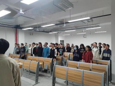 唱完团歌后,同学们观看了习近平总书记同团中央新一届领导班子成员集体谈话的视频。主持人领学了习近平总书记重要讲话精神,同学们结合自己的学习情况,畅谈学习体会与感悟。大家纷纷表示,要始终牢记初心使命,坚定理想信念,练就过硬本领,为全面建成社会主义现代化强国、实现中华民族伟大复兴的中国梦贡献智慧与力量。