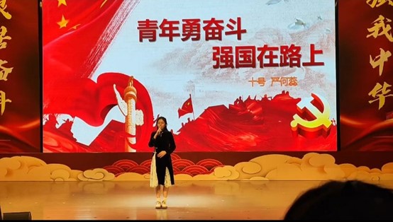 演讲比赛中,严何蕊同学以《青年永奋斗,强国在路上》为题,深情讲述了中国共产党百年奋斗征程和中华儿女艰苦奋斗精神,号召广大文理学子以“七一勋章”获得者周永开为楷模,以优秀文理学子李克浪、苟伟等为榜样,胸怀理想,勇于奋斗,把个人命运与国家命运紧密相连,将个人梦想与中华民族伟大复兴梦炙热相融,争做新时代好青年,在奋斗中让青春绽放绚丽之花。