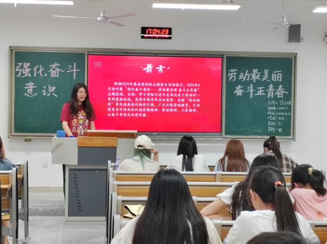 2024年4月27日晚,我院各班在莲湖东区教学楼开展“强化奋斗意识——劳动最美丽 奋斗正青春”主题团日活动,由各班团支书主持,全体同学参加。