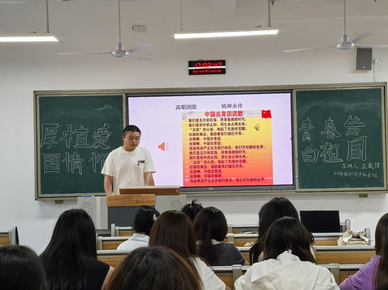 团会伊始,全体成员起立共唱共青团团歌,热情的精神面貌展现出昂扬的青春活力。各班团支书以新中国成立75周年为契机,组织团员学习党史、新中国史、改革开放史、社会主义发展史、中华民族发展史。讲解七十五年里我国在国防、教育、农业、科技、工程等方面的进步。并强调,广大团员和青年心中要深植家国情怀。同学们将怀揣着坚定的理想信念,自觉为强国建设、民族复兴伟业挺膺担当。