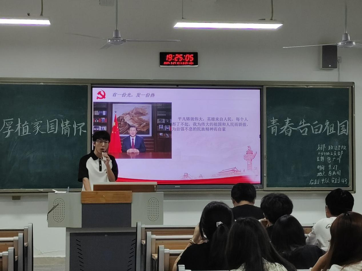 为深入学习贯彻新时代中国特色社会主义思想,增强团员青年的家国情怀,激发青春奋斗精神,引导团员青年厚植家国情怀,用青春回报祖国,为实现中华民族伟大复兴的中国梦贡献青春力量。2024年9月27日下午,我院各班在莲湖东区教学楼开展了以“厚植家国情怀——青春告白祖国”为主题的团会。各班团支书主持,带班辅导员老师与全体同学参加。