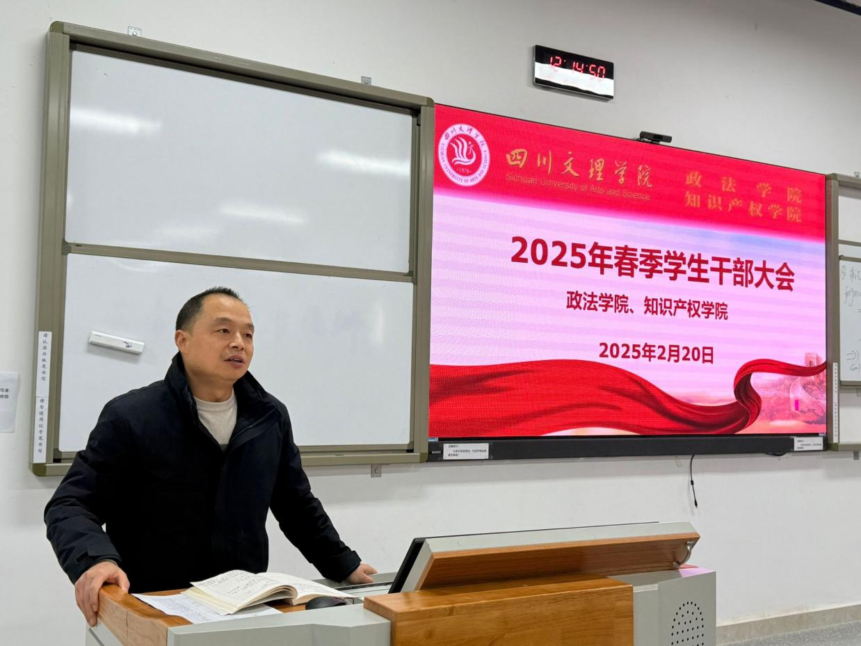 2月20日中午,我院在莲湖东区A318教室召开2025年春季学生干部大会,党委副书记刘良训、组织员唐幸福、辅导员李媛媛与邱文艳与会,团总支学生会以及各教学班班长、团支书等学生干部齐聚一堂,共绘新学期学生工作蓝图。
