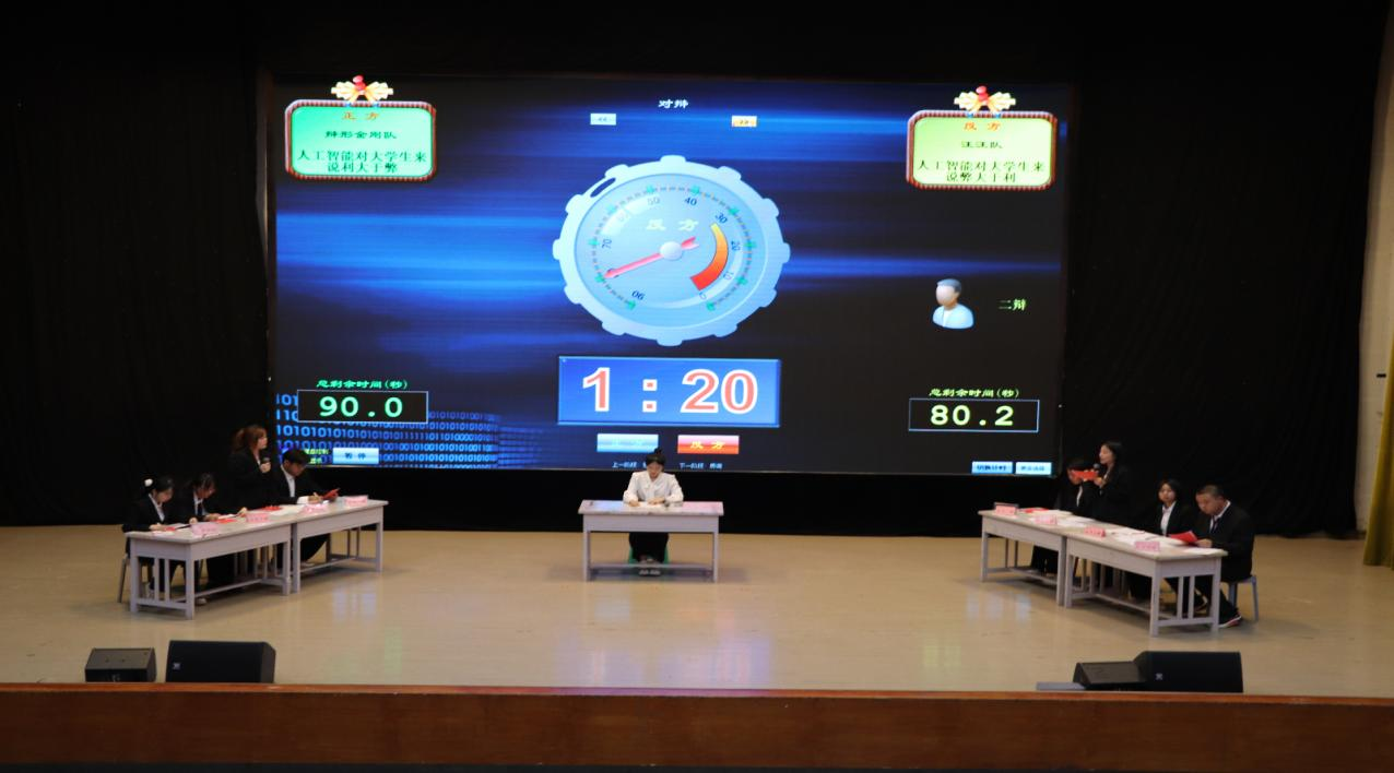 在辩论赛上,双方辩手围绕主题展开了激烈地辩论。来自2024级5班的正方代表从利大于弊为出发点,详细地论述了人工智能在多个领域的推动作用。来自2024级8班的反方代表从弊大于利为出发点,认为人工智能在大学生的学术研究、职业规划、社会责任感和创造力以及道德伦理等方面都带来了诸多弊端。比赛过程中,正反双方辩手用敏捷的思维、清晰的逻辑在立论、驳论、自由辩论和总结陈词等环节中展开了激烈交锋,旁征博引、妙语连珠,现场高潮迭起,观众掌声不断。最后反方代表凭借出色发挥在比赛中获胜。