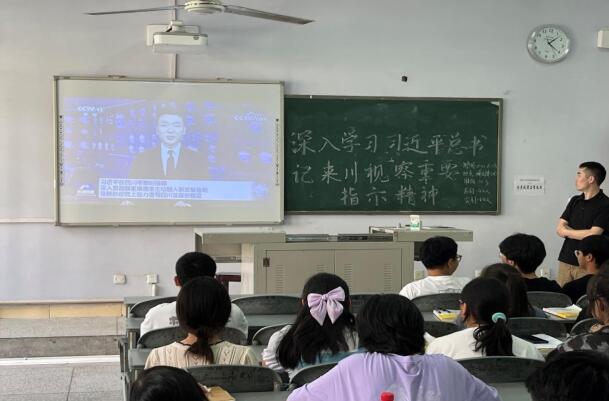 本次学习主要围绕《新闻联播》《人民日报》《四川日报》等相关报道,认真学习领会习近平总书记来川视察重要指示精神。班会认为,此次习近平总书记来川是党的十九大以来第二次到四川考察调研,充分体现了总书记和党中央对四川工作的高度重视、对四川人民的情深似海、对青年学子的深切关怀。总书记先后到眉山、宜宾等地,深入农村、文物保护单位、学校、企业等进行考察调研,并作出重要指示、提出重要要求,为我们新时代青年学生成长成才指明了前进方向,提供了根本遵循。